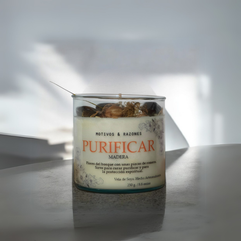 Con flores del bosque y romero, esta vela de 250 g limpia, sana y protege a nivel espiritual.